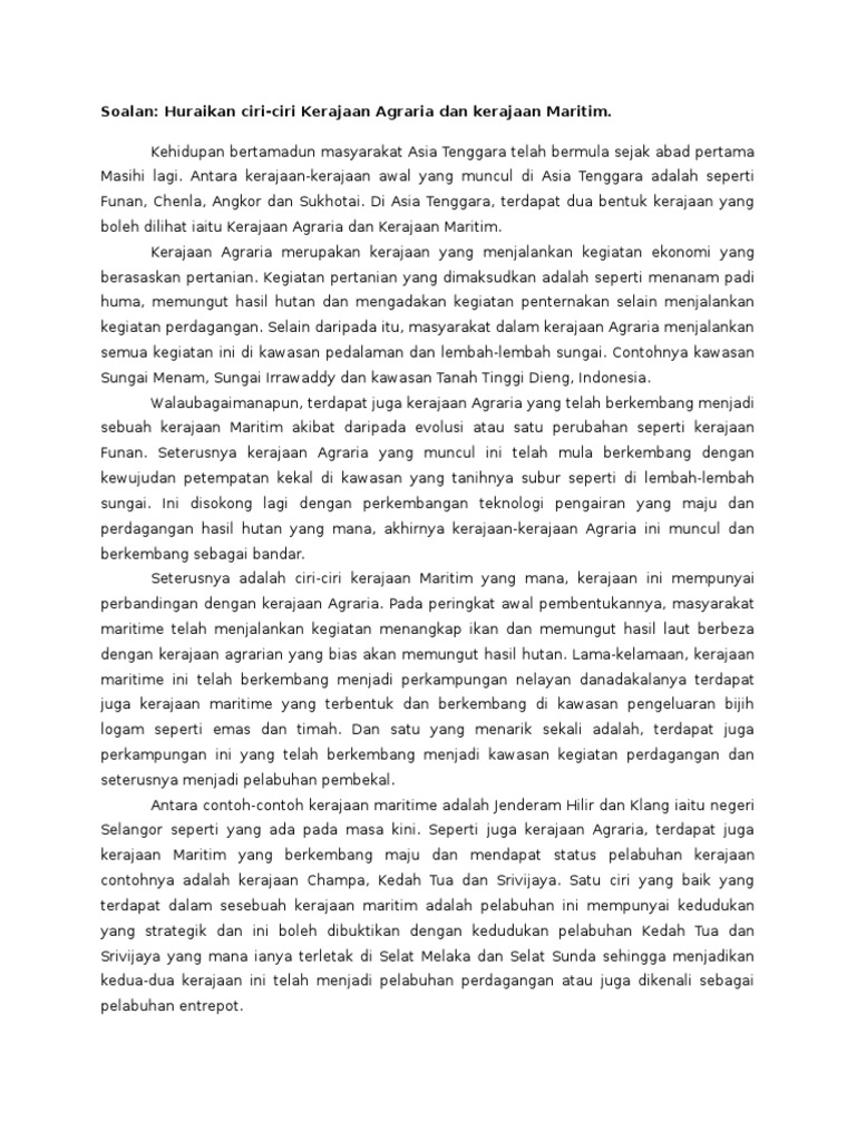 Contoh Soalan Spm Kerajaan Agraria Dan Maritim